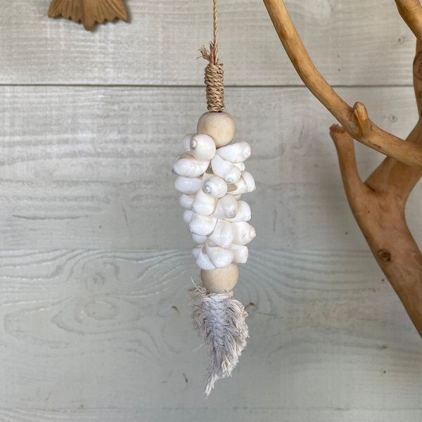 Maak kennis met onze prachtige schelpenhanger, de perfecte accessoire om je ruimte of persoonlijke bezittingen te verfraaien. Deze veelzijdige schelpenhanger kan worden gebruikt als decoratie, deurhanger, sleutelhanger of tasdecoratie, en voegt overal een vleugje kustcharme toe.