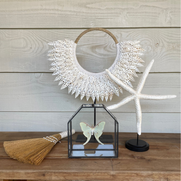 - Natuurlijk Zeester Design: Elke zeester is uniek, zorgvuldig geselecteerd om zijn authentieke vorm en natuurlijke textuur. Het stuk behoudt de ruwe, organische uitstraling van de natuur, waardoor het een verfijnde en rustgevende touch toevoegt aan je interieur.