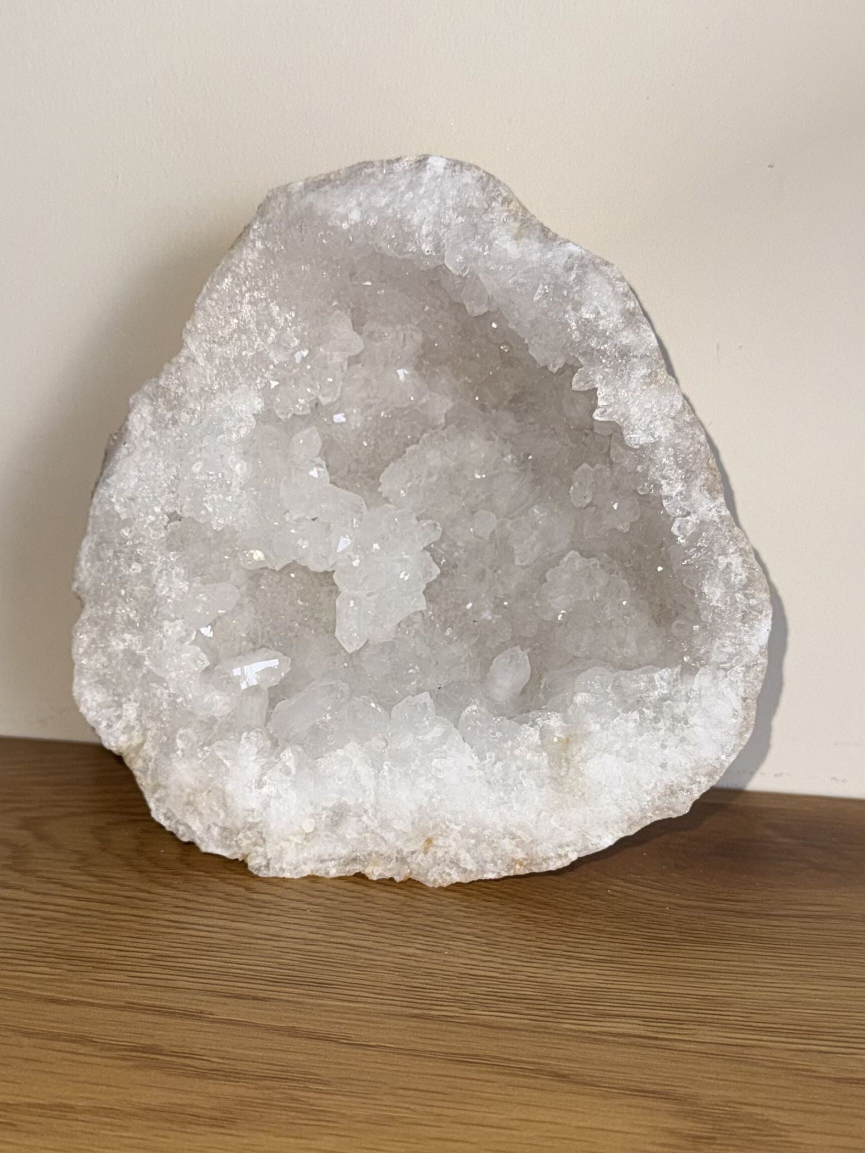 - Kleur: Helder kristal met natuurlijke variaties, wat elke geode uniek maakt.