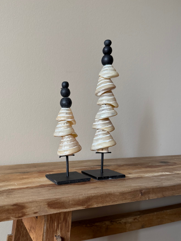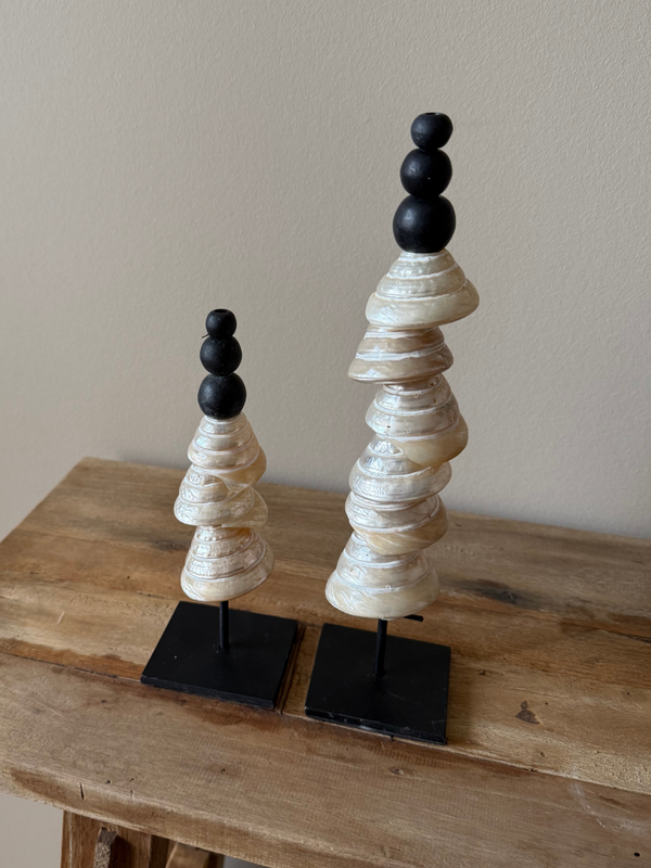 Creëer een sereen en elegant decor door de parelmoer schelpentoren te combineren met andere woonaccessoires, zoals versteend hout of onze vlinderkistjes. Deze toren staat prachtig alleen, maar komt ook tot zijn recht in een groep met andere decoratieve items voor een gelaagd, bohemian effect.