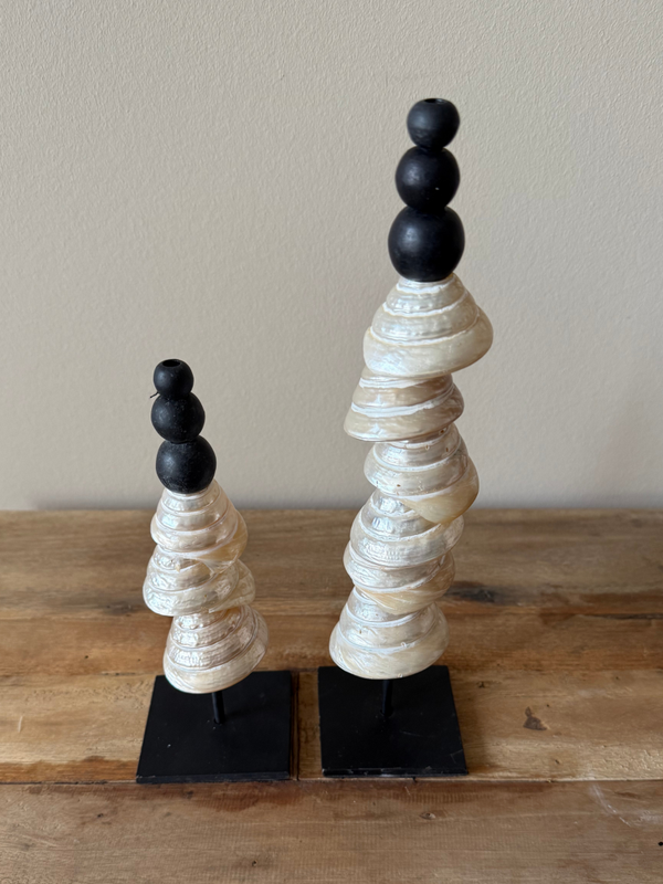 - Stabiele Standaard: Geplaatst op een stevige, zwarte metalen standaard die de natuurlijke glans van de schelpen mooi contrasteert en extra stabiliteit biedt. Perfect voor op een dressoir, boekenplank of als centerpiece op een bijzettafel.