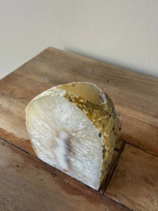 De natuurlijke lagen in de agaat creëren een subtiel spel van licht en kleur zodra het waxinelichtje brandt. Een rustgevende en luxueuze toevoeging aan elk interieur – van modern tot bohemian chic.