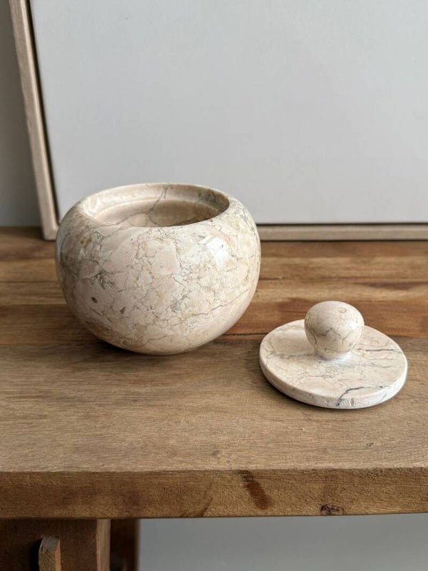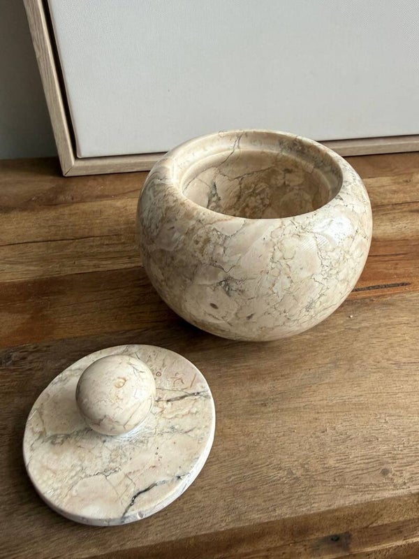 Stone Jar Java – Beige marmeren pot met deksel