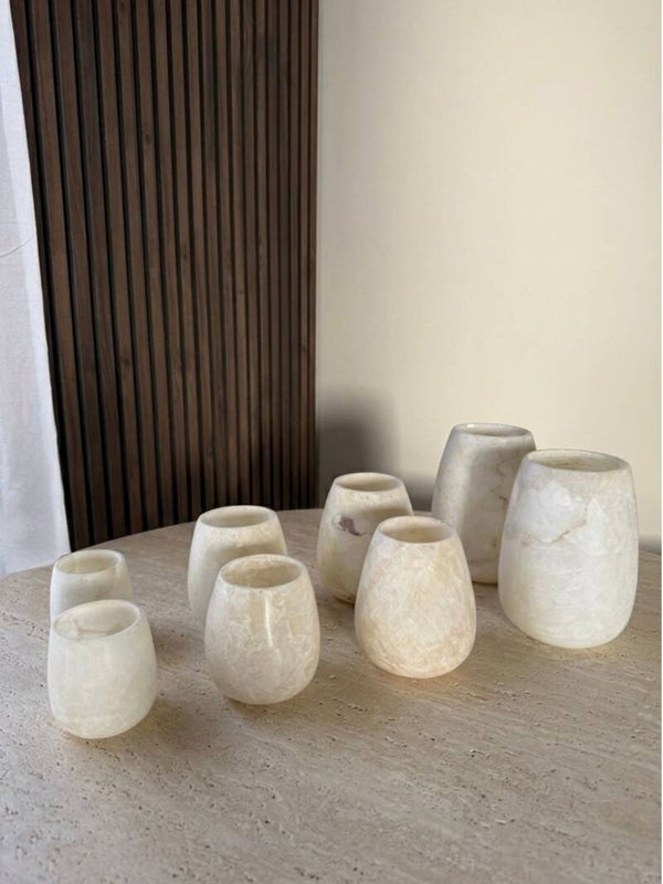 Voeg een vleugje natuurlijke luxe toe aan je interieur met een authentiek albasten windlicht – de perfecte balans tussen kunst en sfeerverlichting.